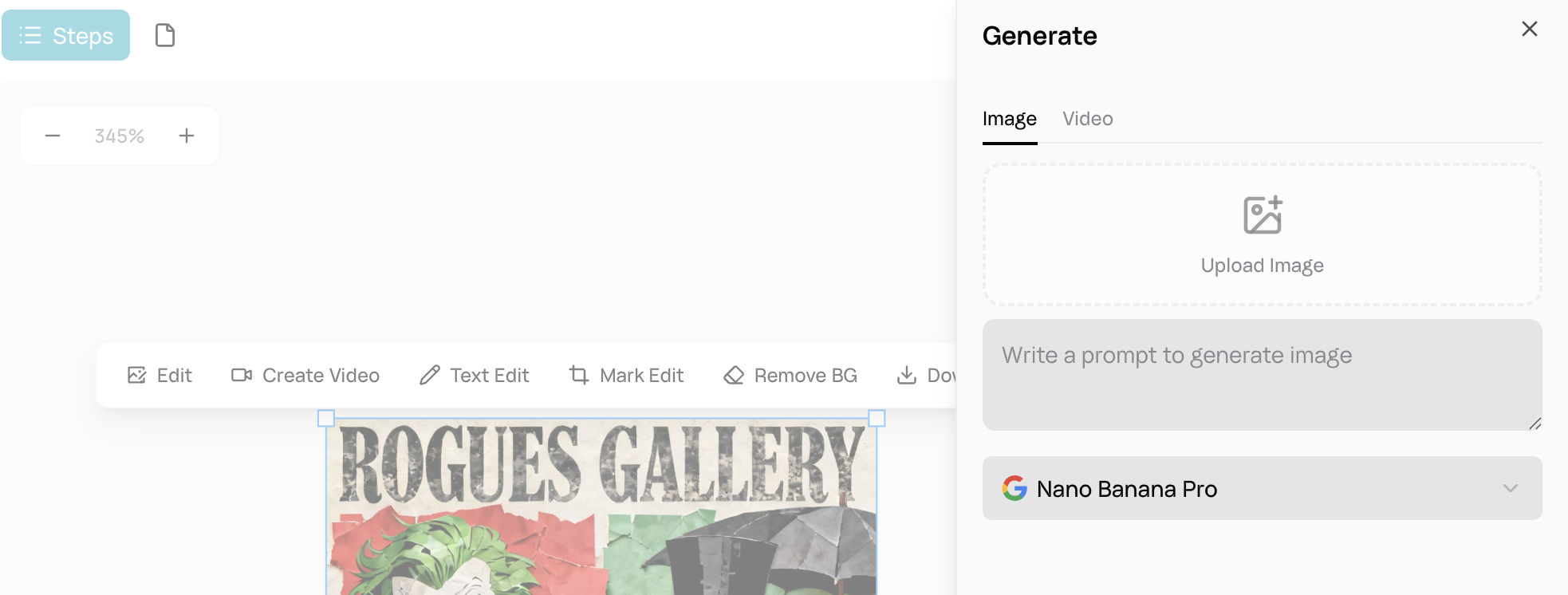Once media is on canvas, you can select, move, resize, and apply AI operations.
