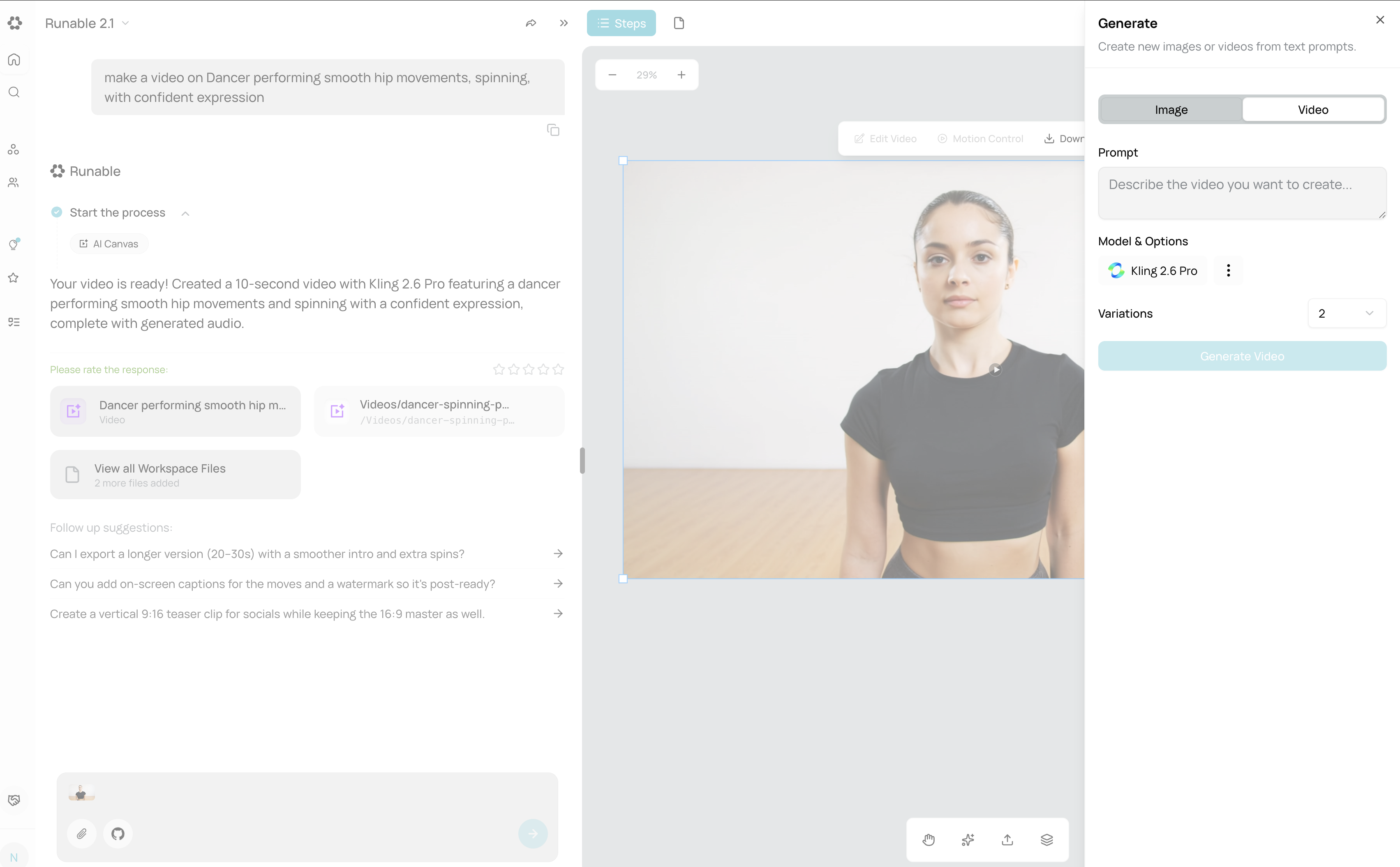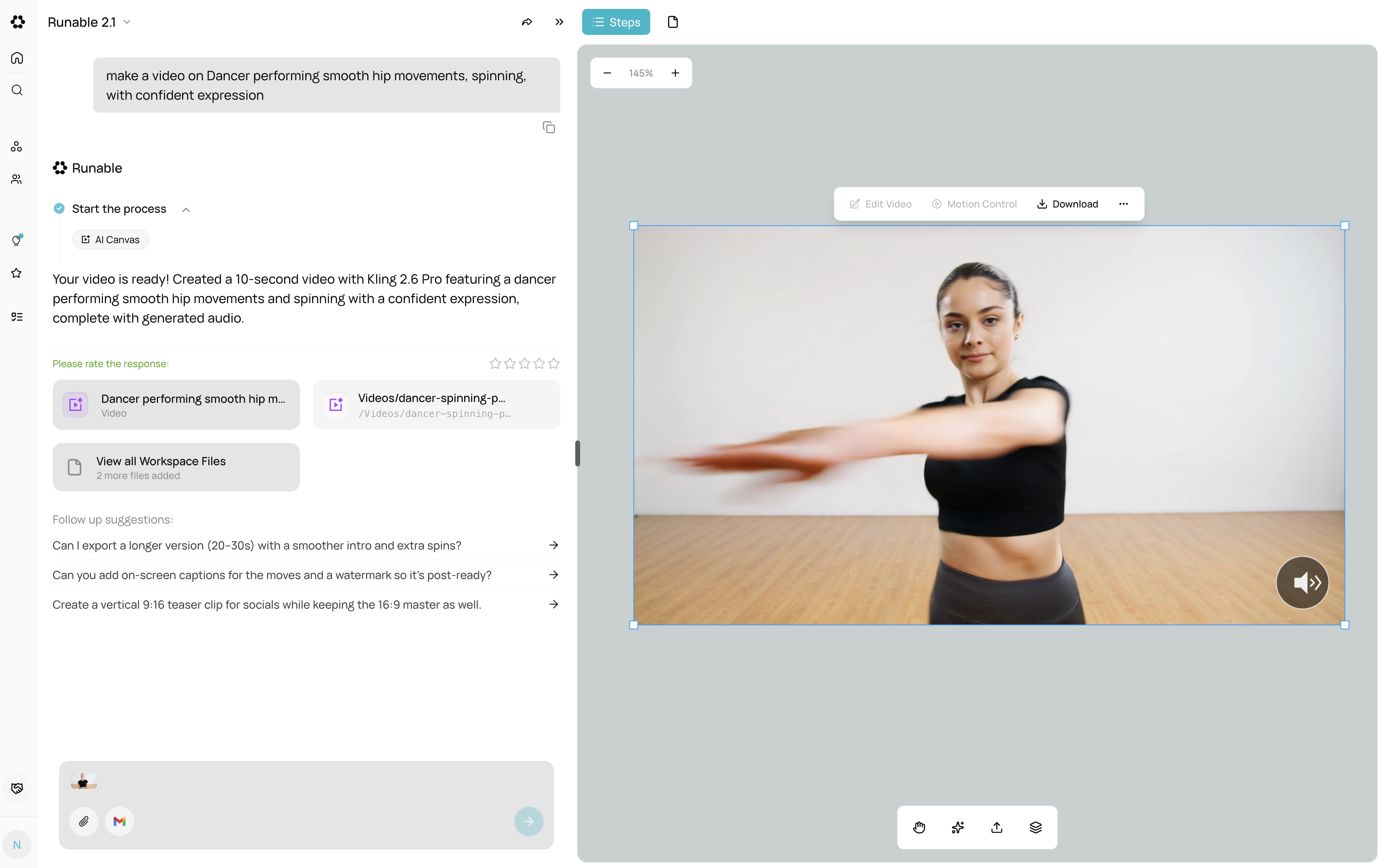 - Keep prompts action-focused — “Person dancing, spinning, jumping” not “beautiful dancing with dramatic lighting”
