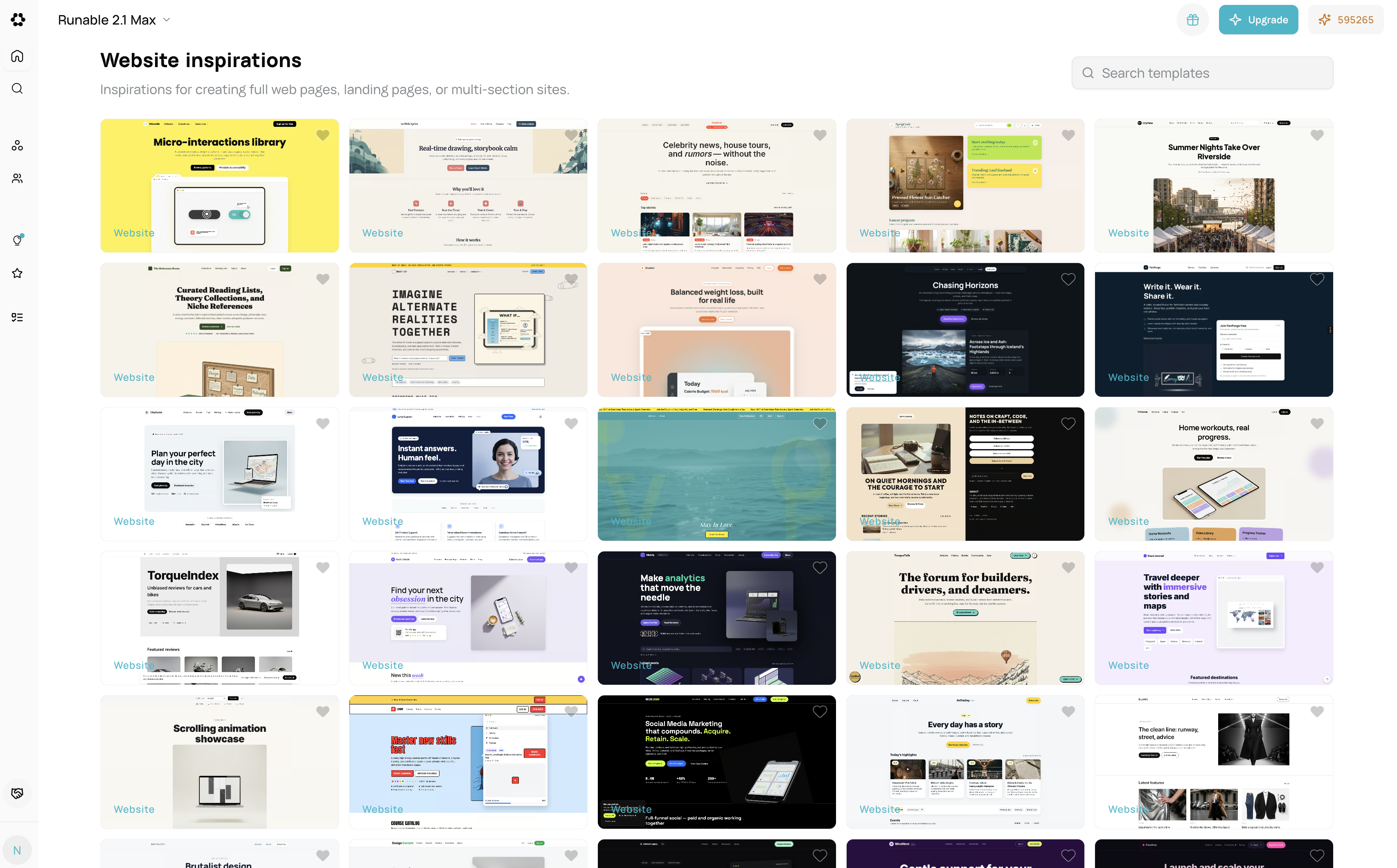 Pre-designed website templates you can customize instantly. Instead of starting from scratch, begin with professionally designed examples. Click “Use Inspiration” and AI adapts it to your needs — change colors, text, layout, or add features through simple conversation. Not like traditional templates