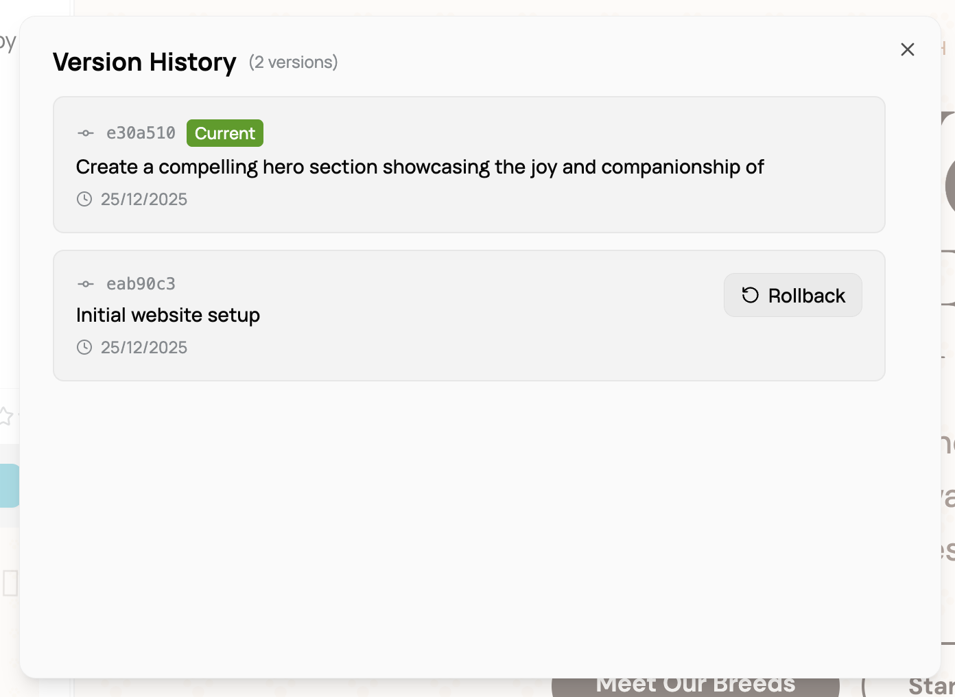 | Automatic Snapshots | Git captures your website state after each AI update |