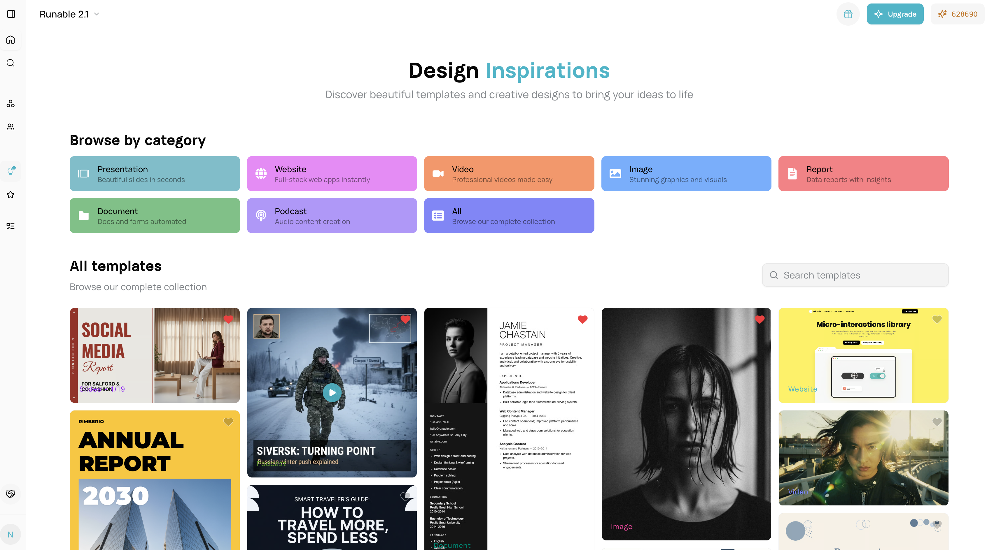 Inspirations are pre-designed templates across all Runnable artifact types. Visit /inspirations to browse, customize, and use templates to jumpstart your projects.