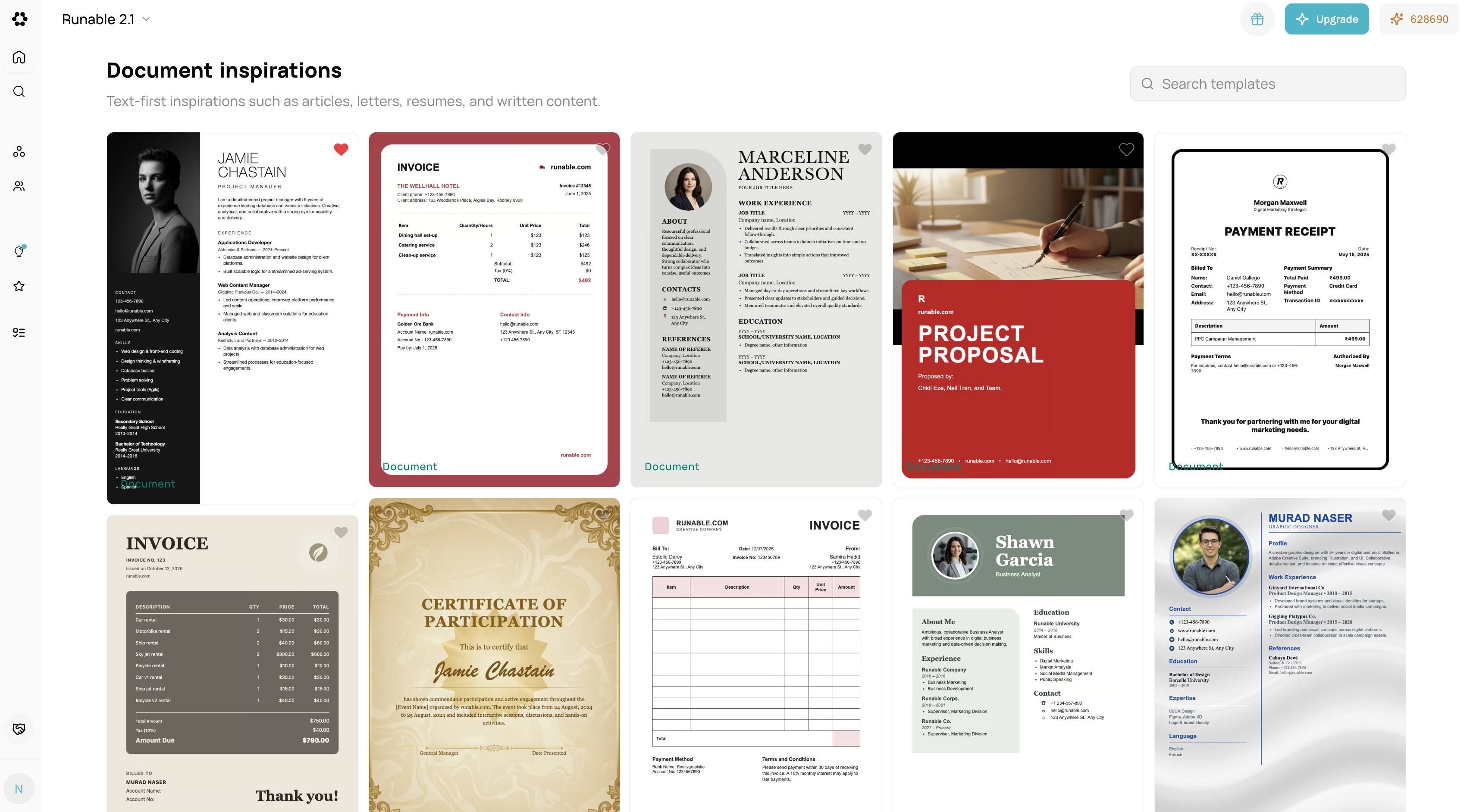 /inspirations/document. - Preview document layouts.