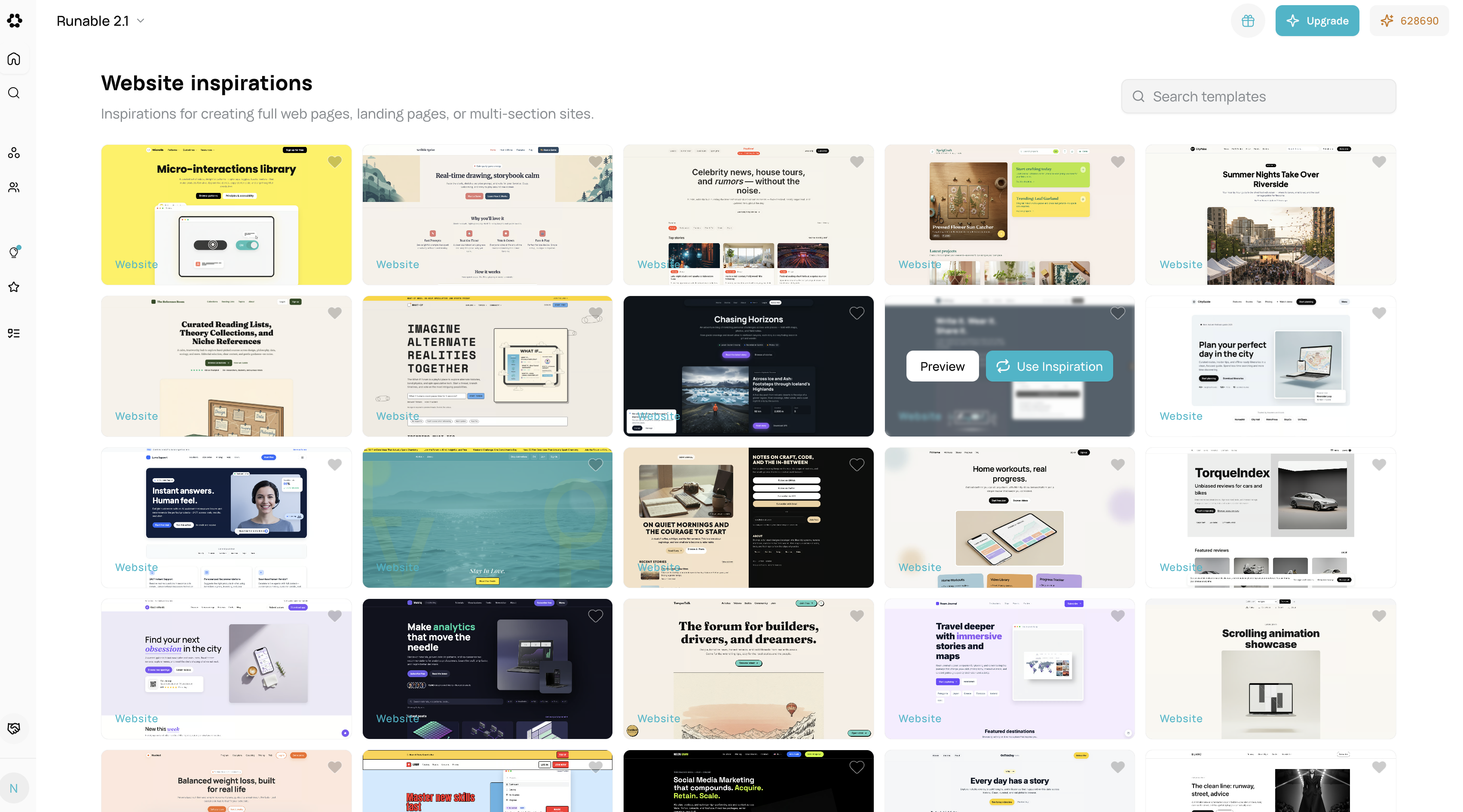 /inspirations/website. - Preview site layouts and component arrangements.
